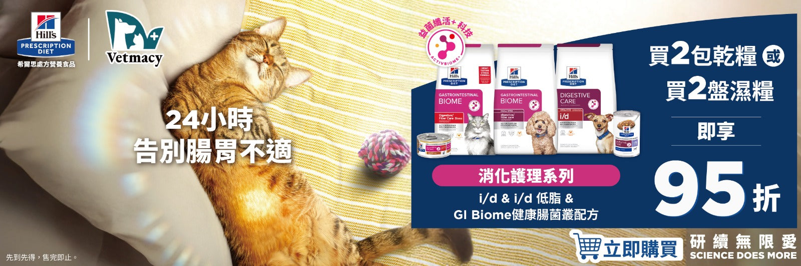 Hill's 希爾思 是全球領先的寵物營養專家,專注於研發優質的寵物食品和補充品,為寵物提供營養支持,幫助牠們活出更健康、更長久的生活。希爾思的熱銷產品包括 I/D 消化、C/D 泌尿及 GI Biome 腸胃處方糧,是獸醫師推薦的營養解決方案,所有產品均於美國生產製造,為有特殊營養需求的寵物量身打造。